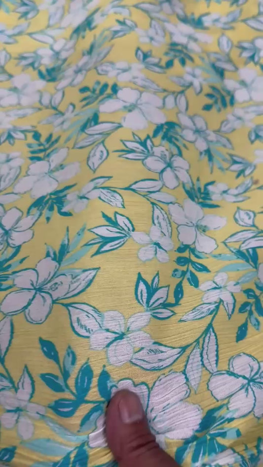 Buy Crinkled Crepe Yellow Bloom Whisper Printed Fabric
