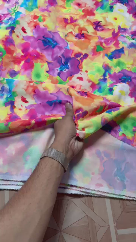 Buy Micro Satin Watercolour Splash Floral Printed Fabric