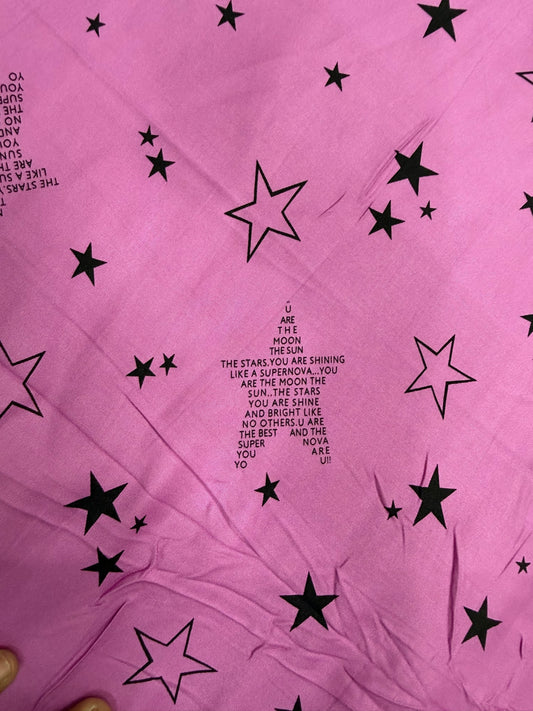 Buy Viscose Modal Star Words Printed Pink Base Fabric