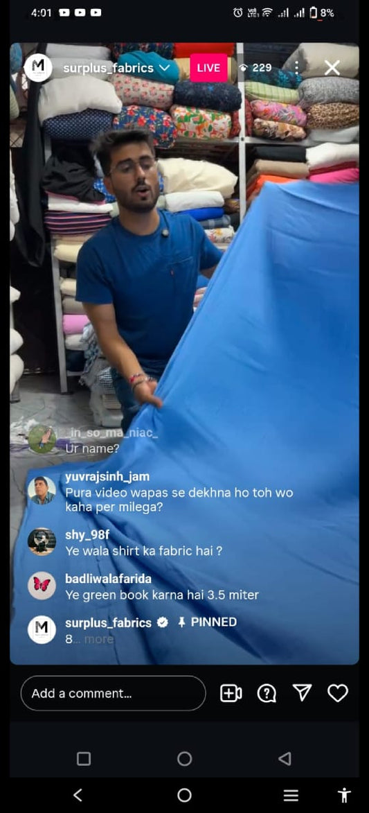 Buy Cotton Crinkled Crepe Baby Blue Solid Fabric