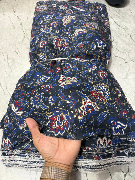 Buy Mul Cotton Jacobean Black Base Flower Printed Fabric