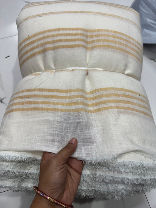 Buy Mul Cotton White Base Beige Stripe Yarn Dyed Fabric
