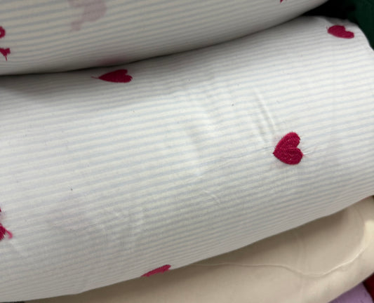 Buy Poplin Blue Stripe Heart Embroidery Fabric