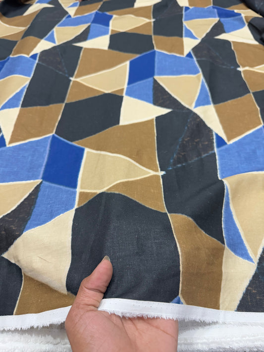 Buy Cotton Linen Abstract Triangle Printed Fabric