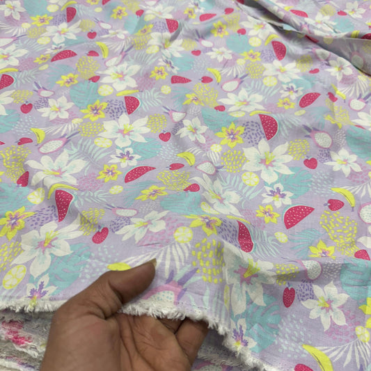 Buy Cotton Viscose Soothing Blue Printed Fabric