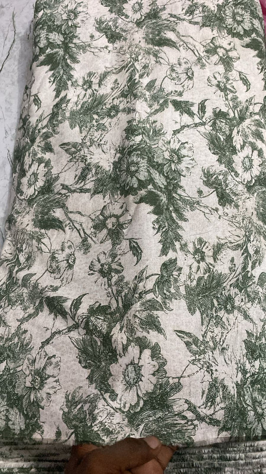 Buy Cotton Viscose Toile Aesthetic Green Flower Fabric