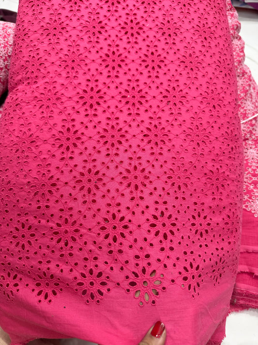 Buy Cotton Hakoba Hot Pink Flower 3 Leaf Pair Embroidery Fabric
