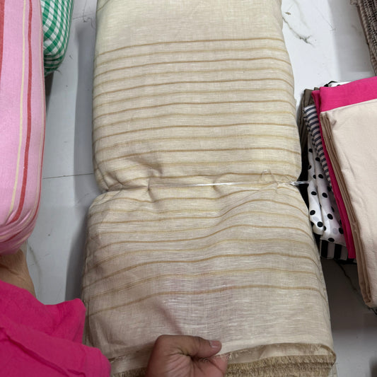 Buy Pure Linen Ivory Base Beige Stripe Fabric