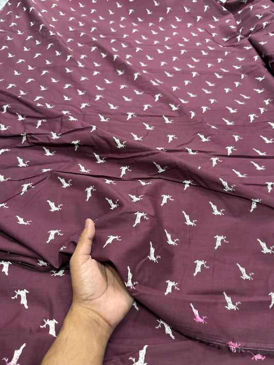 Buy Wine Poplin Reindeer Printed Fabric