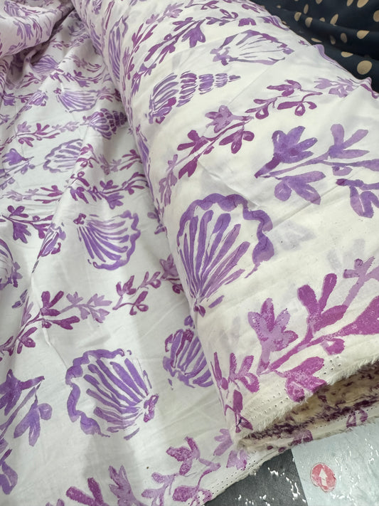 Buy Cotton Poplin White Base Sea Shell Printed Fabric