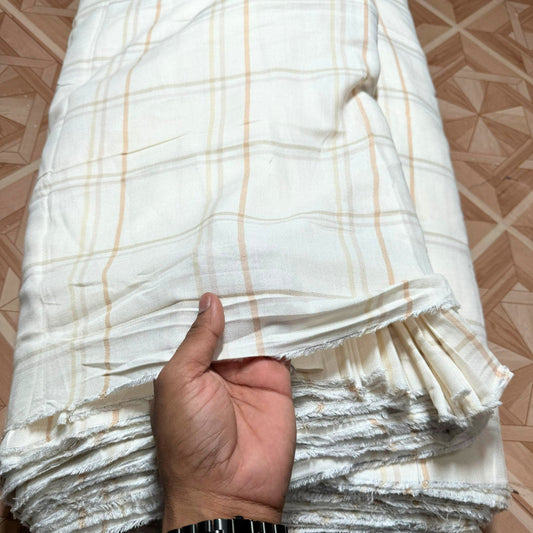 Woollen Pashmina White & Yellow Check Shirting Fabric