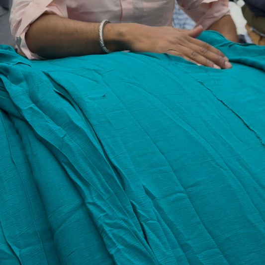 Solid Crinkled Tiffany Blue Crepe Fabric