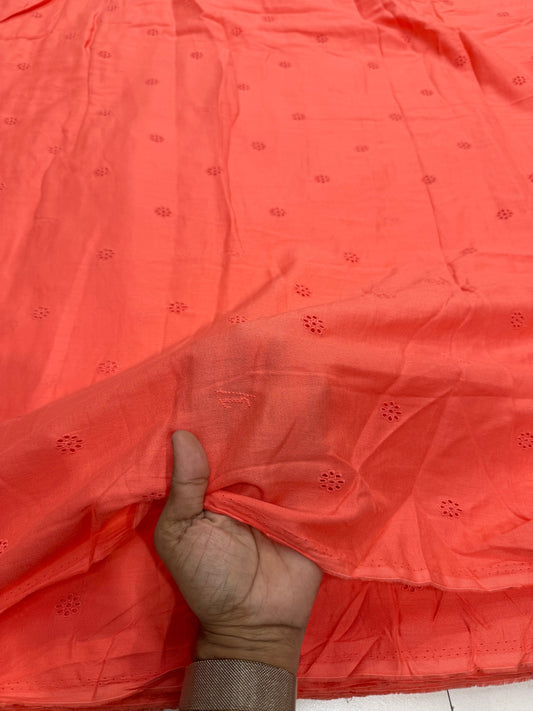 Summer Peach Cotton Gingham Peach Embroidery Fabric
