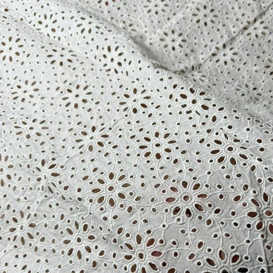 Buy Pure Cotton White Hakoba 3open Cutwork Embroidery Fabric