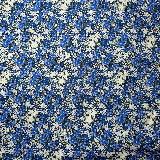 Buy Poplin Tiny Flower Blue Base Printed Fabric