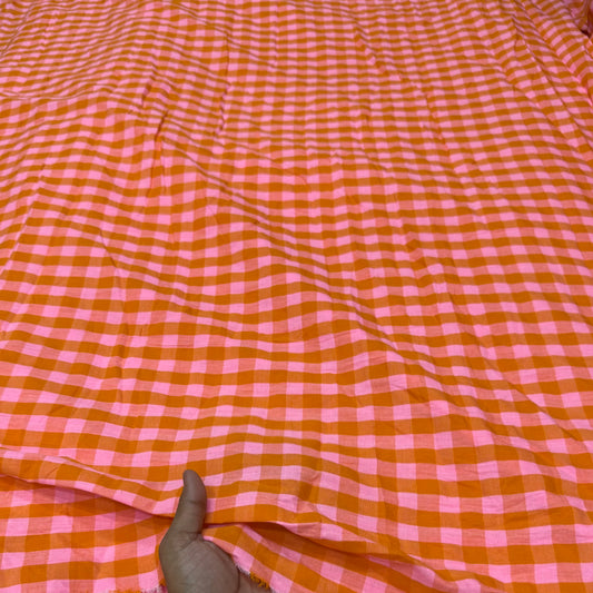 Summer Peach Cotton Gingham Peach Embroidery Fabric
