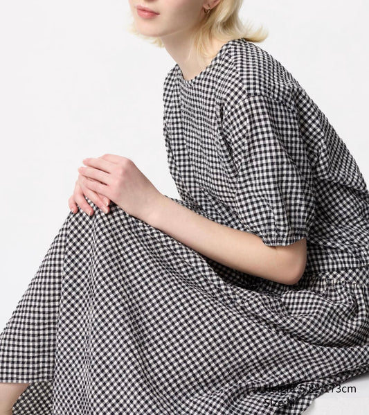 Premium Seersucker Gingham Dark Blue & White Check Fabric
