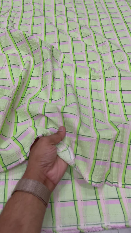 Summer Peach Cotton Gingham Embroidey Wrinkle-Free 58” Premium Seersucker Fabric