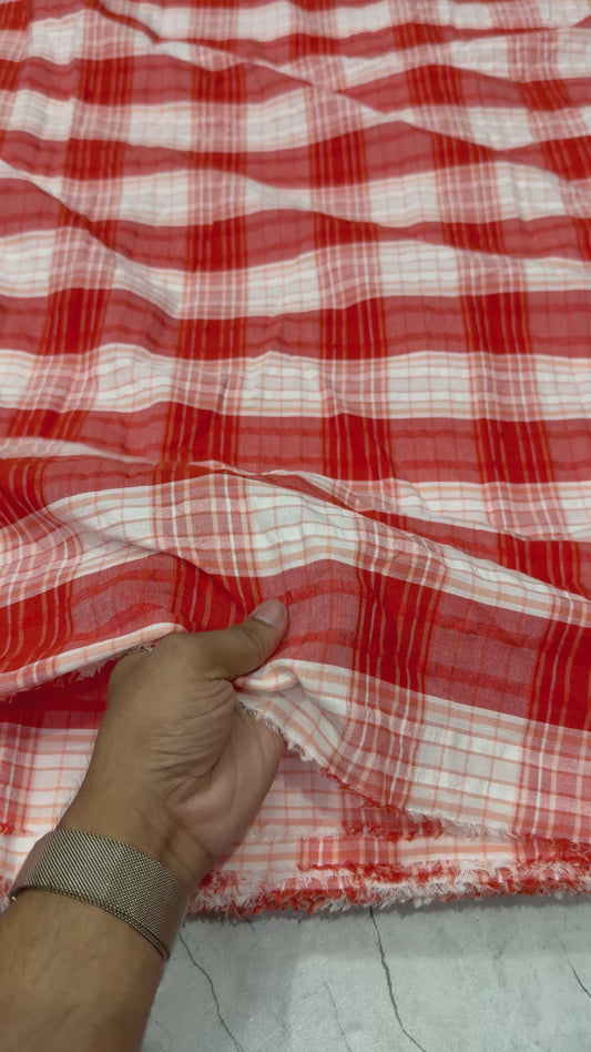 Summer Dark Maroon Gingham – Premium Seersucker Fabric