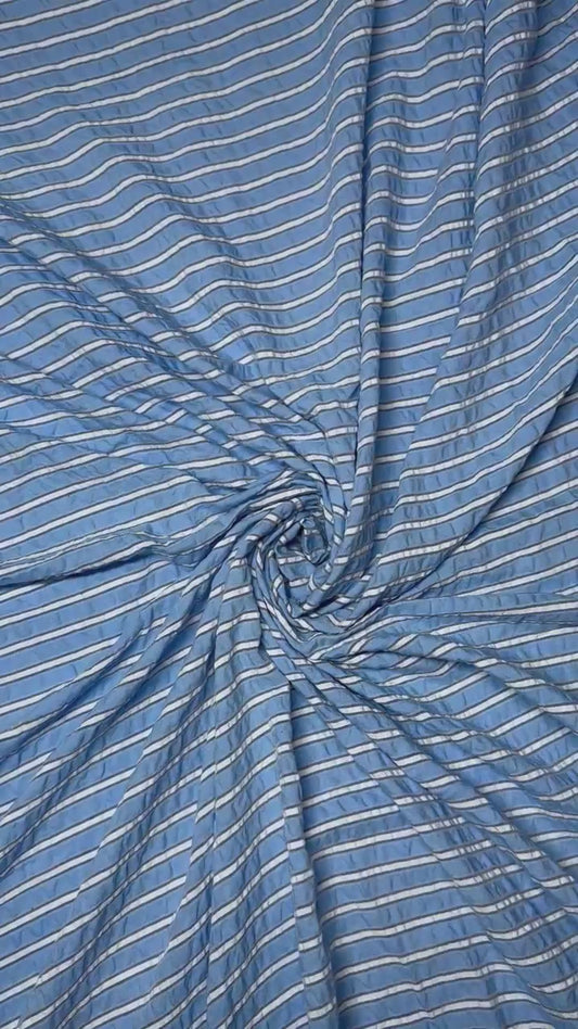 Premium Seersucker Formal Blue Stripe Paisley Border Embroidery Fabric