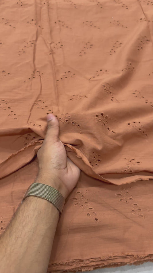 Buy Cotton Hakoba Brick Brown Leaf Cutwork Embroidery
