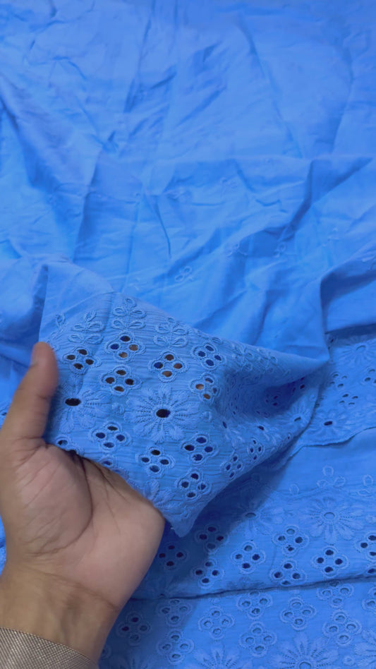Buy Cotton Hakoba Aqua Blue 4 Flower Border Embroidery