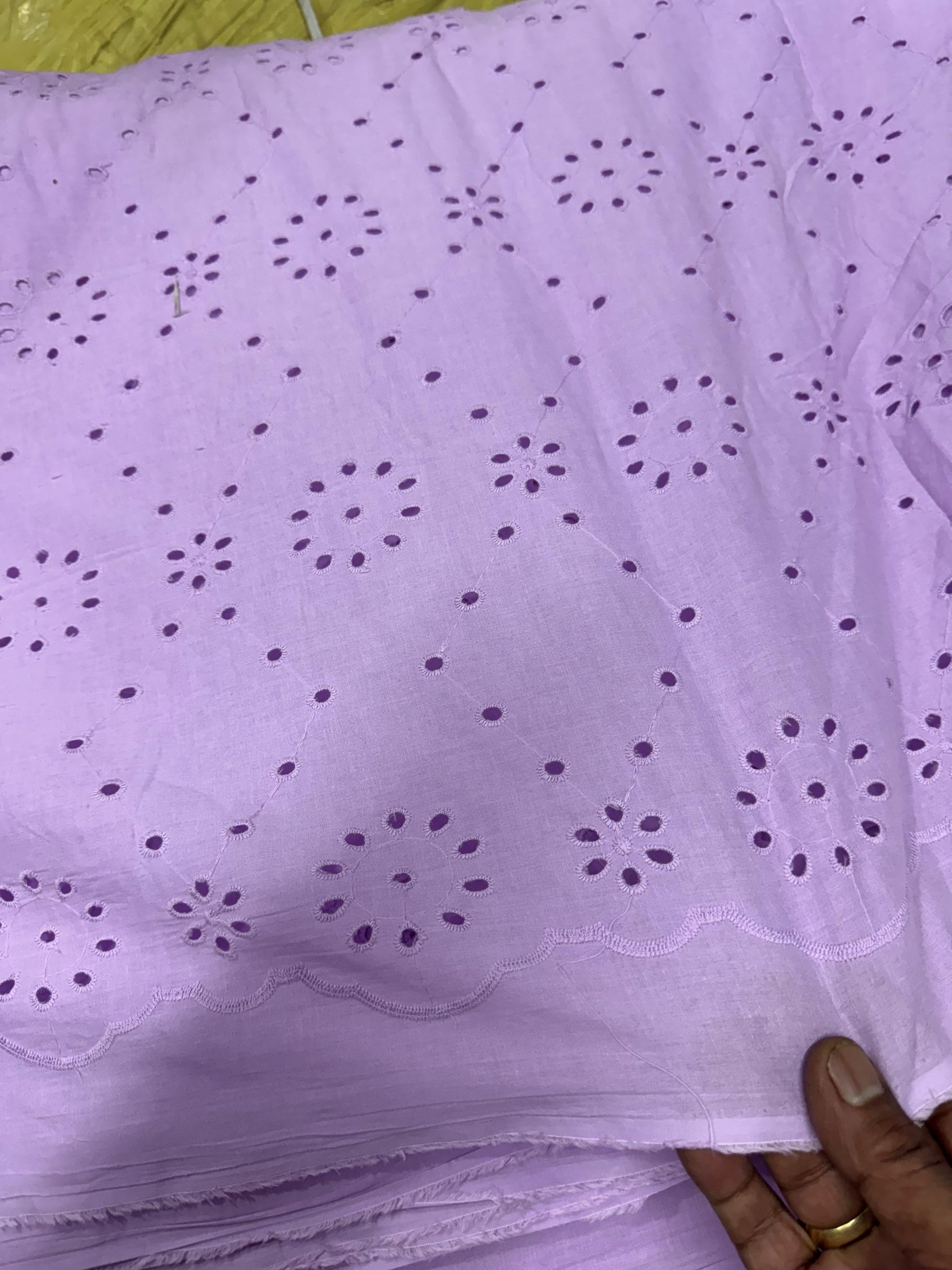 Cotton chikan embroidered fabric exudes elegance and tradition. Made from breathable cotton, it showcases intricate chikan embroidery, celebrated for its delicate patterns and exquisite craftsmanship. Perfect for a variety of apparel, from casual to formal wear, this fabric brings a touch of sophistication and cultural charm to any garment or project.