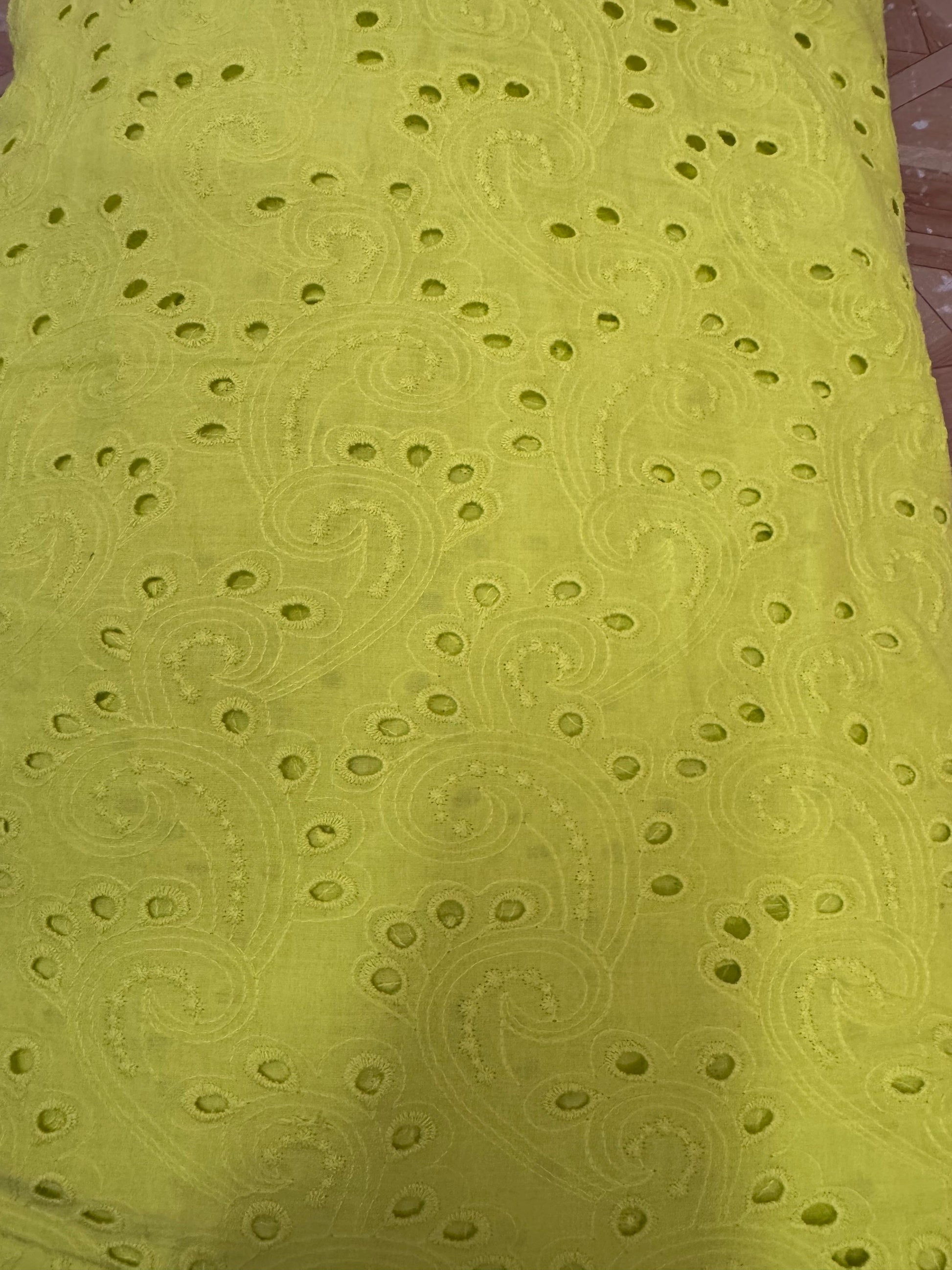 Cotton chikan embroidered fabric exudes elegance and tradition. Made from breathable cotton, it showcases intricate chikan embroidery, celebrated for its delicate patterns and exquisite craftsmanship. Perfect for a variety of apparel, from casual to formal wear, this fabric brings a touch of sophistication and cultural charm to any garment or project.Â