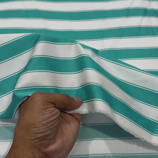 Buy Cotton Twill Satin Firozi Dual Stripe Fabric
