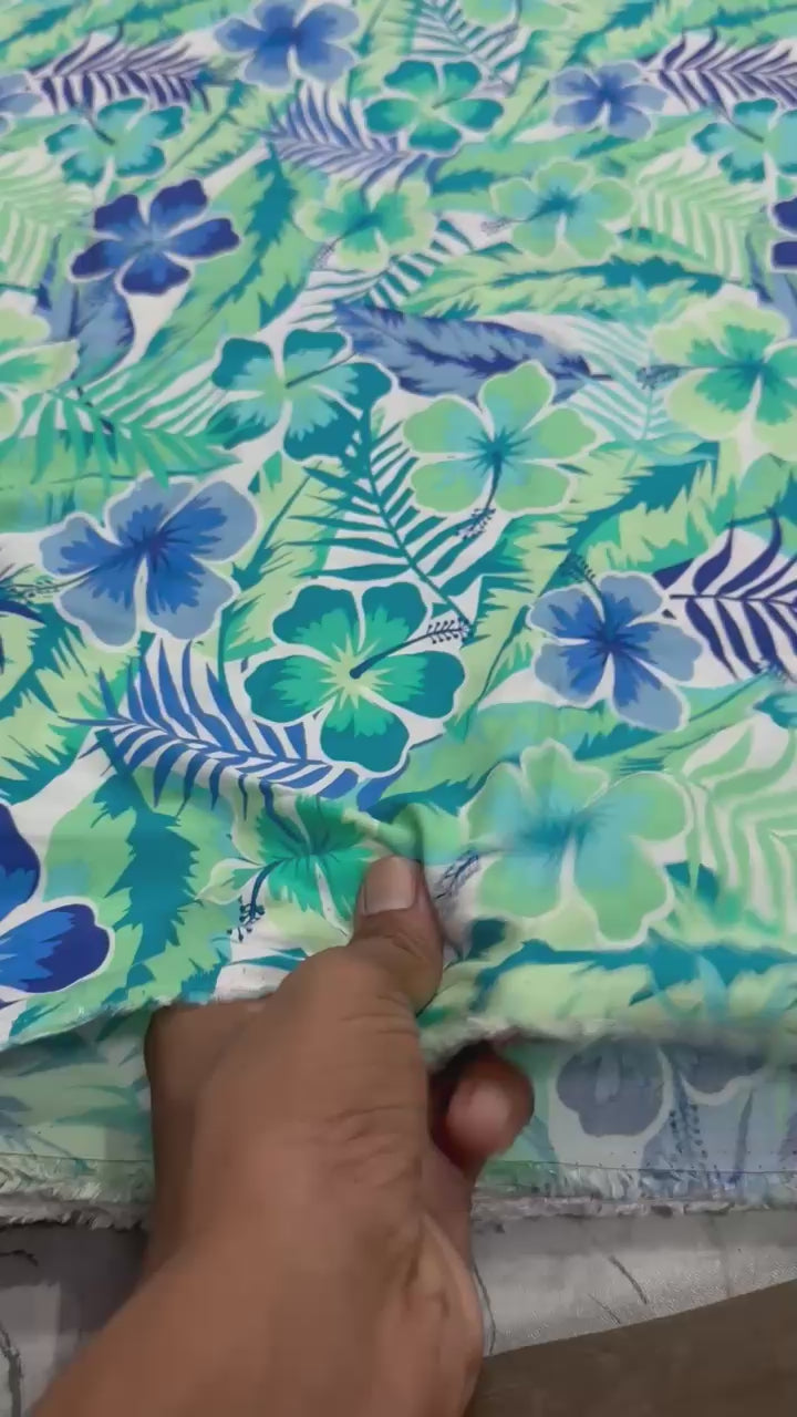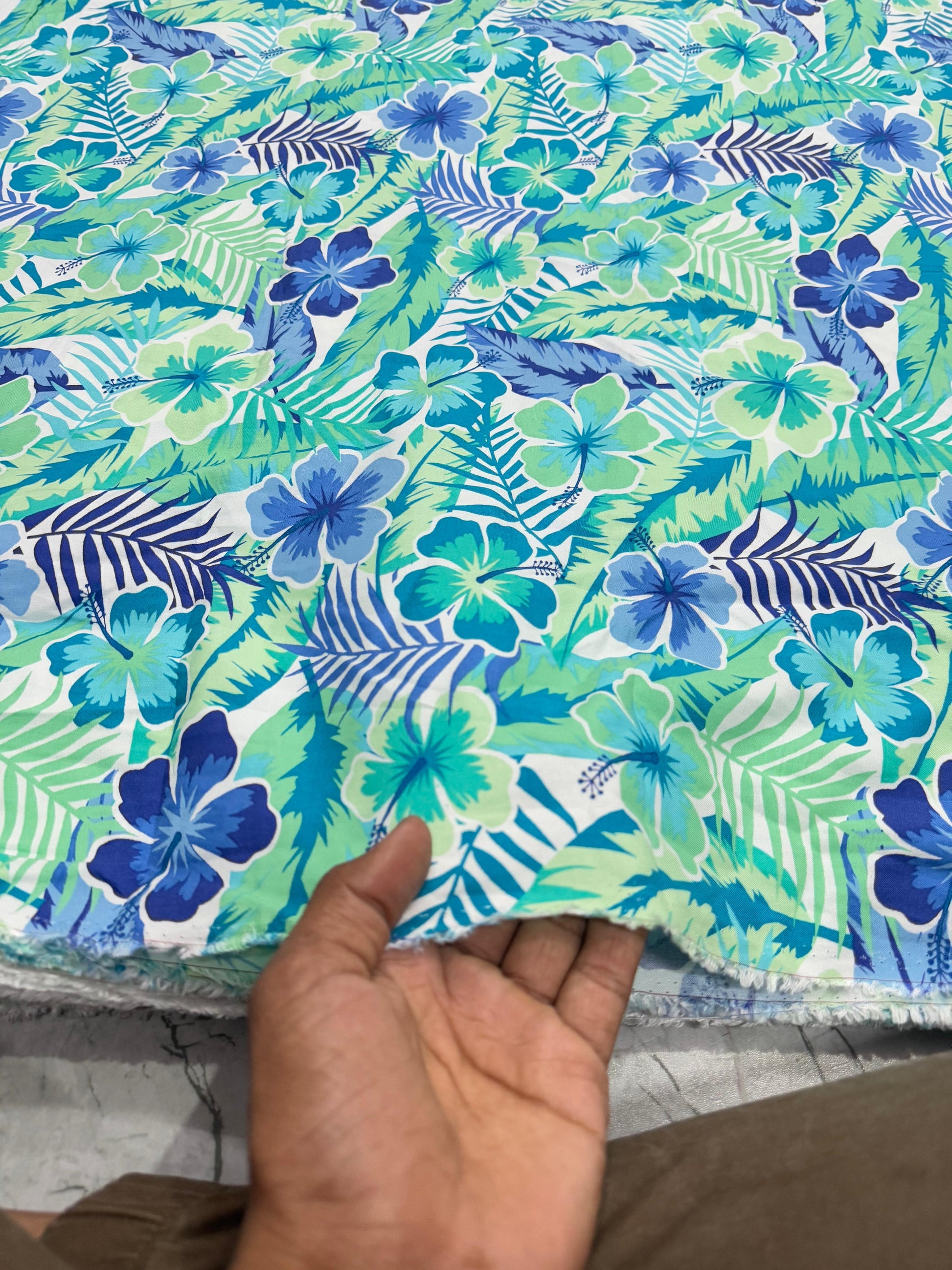 Buy Cotton Viscose Peacock Green Blue Flower Fabric