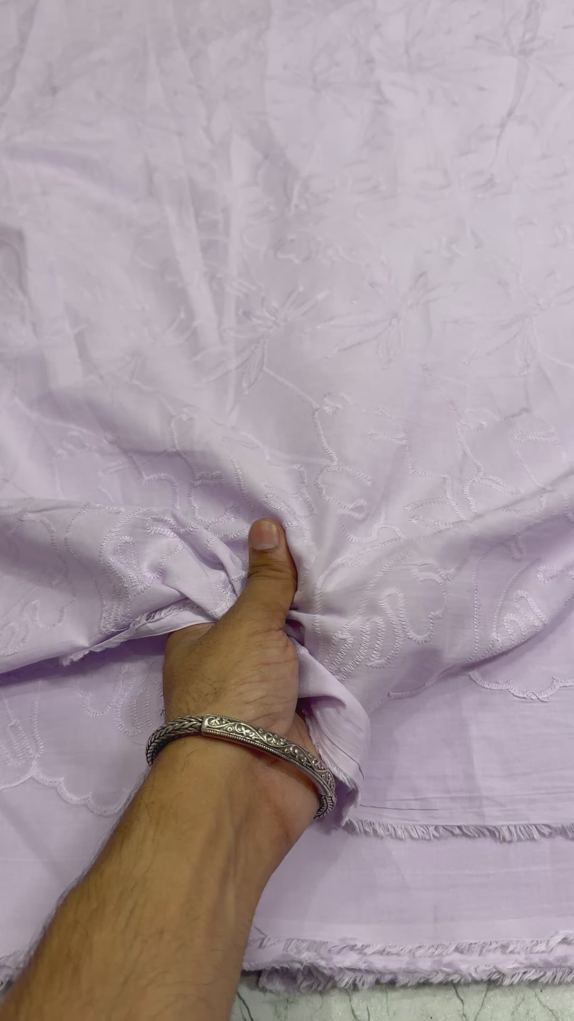 Cotton chikan embroidered fabric exudes elegance and tradition. Made from breathable cotton, it showcases intricate chikan embroidery, celebrated for its delicate patterns and exquisite craftsmanship. Perfect for a variety of apparel, from casual to formal wear, this fabric brings a touch of sophistication and cultural charm to any garment or project.