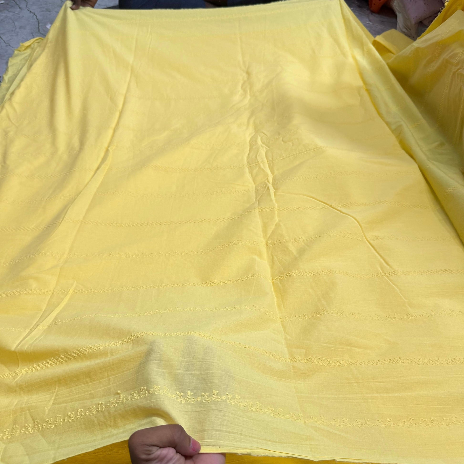 Cotton chikan embroidered fabric exudes elegance and tradition. Made from breathable cotton, it showcases intricate chikan embroidery, celebrated for its delicate patterns and exquisite craftsmanship. Perfect for a variety of apparel, from casual to formal wear, this fabric brings a touch of sophistication and cultural charm to any garment or project.