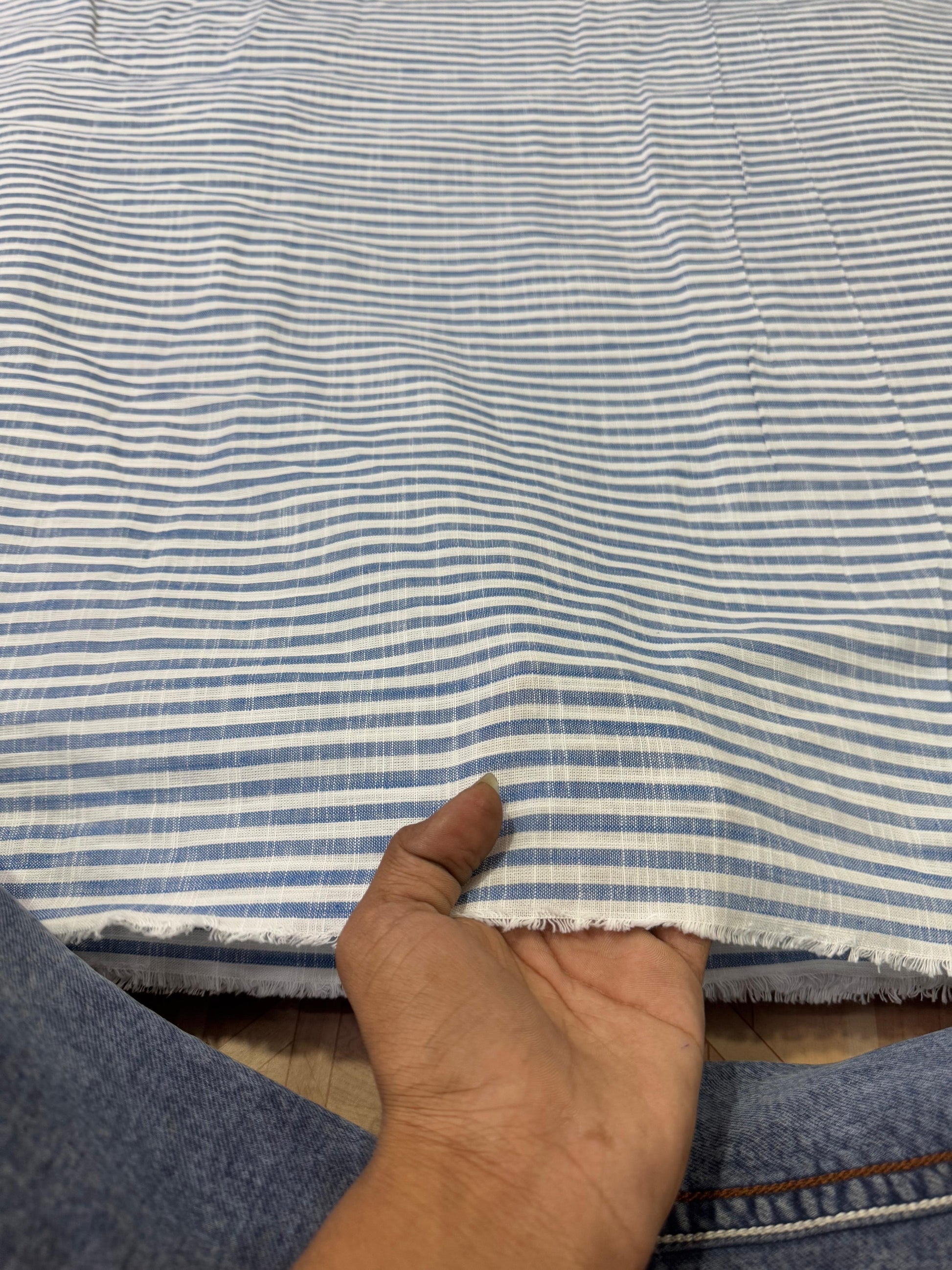 Buy Premium Cotton Linen Y/D Denim Blue Stripe Fabric