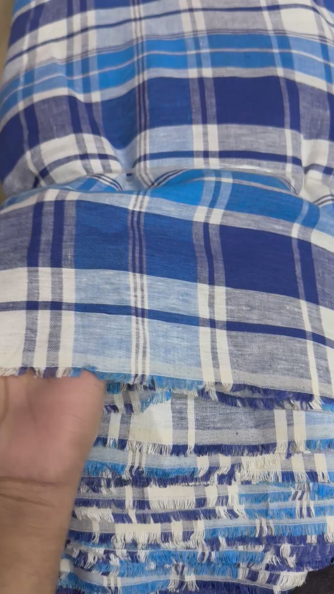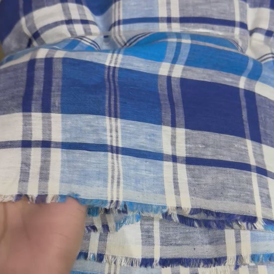 Buy Pure Linen Royal Blue Shirting Check Fabric