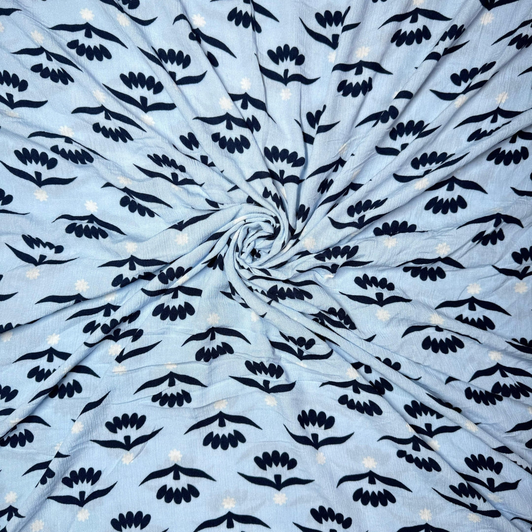 Explore the options including printed Crepe designs ranging from vibrant florals to captivating abstracts, mesmerizing geometrics, and elegant Mughal motifs. Elevate your wardrobe with Maa Ambay Fabrics premium quality.
