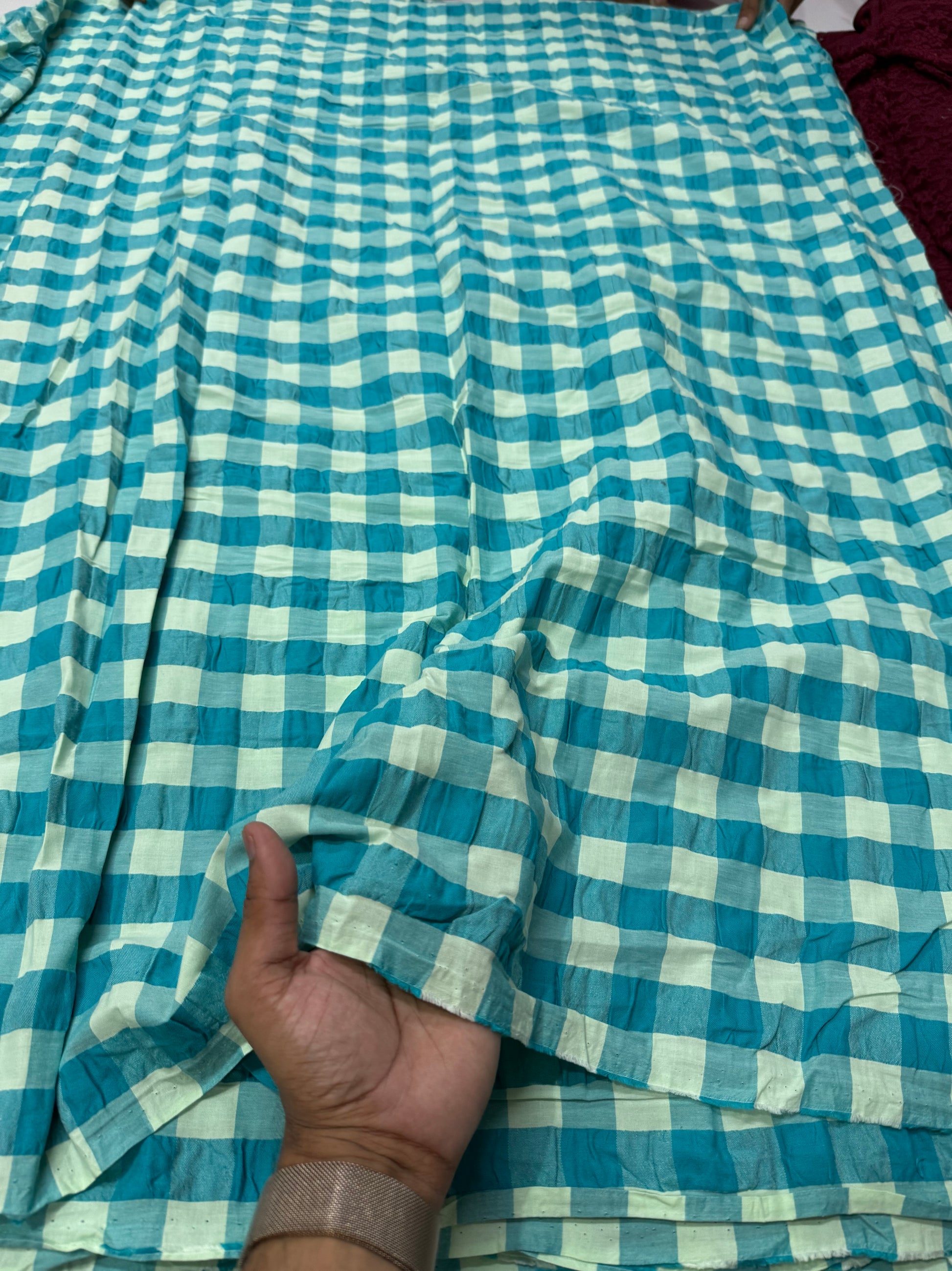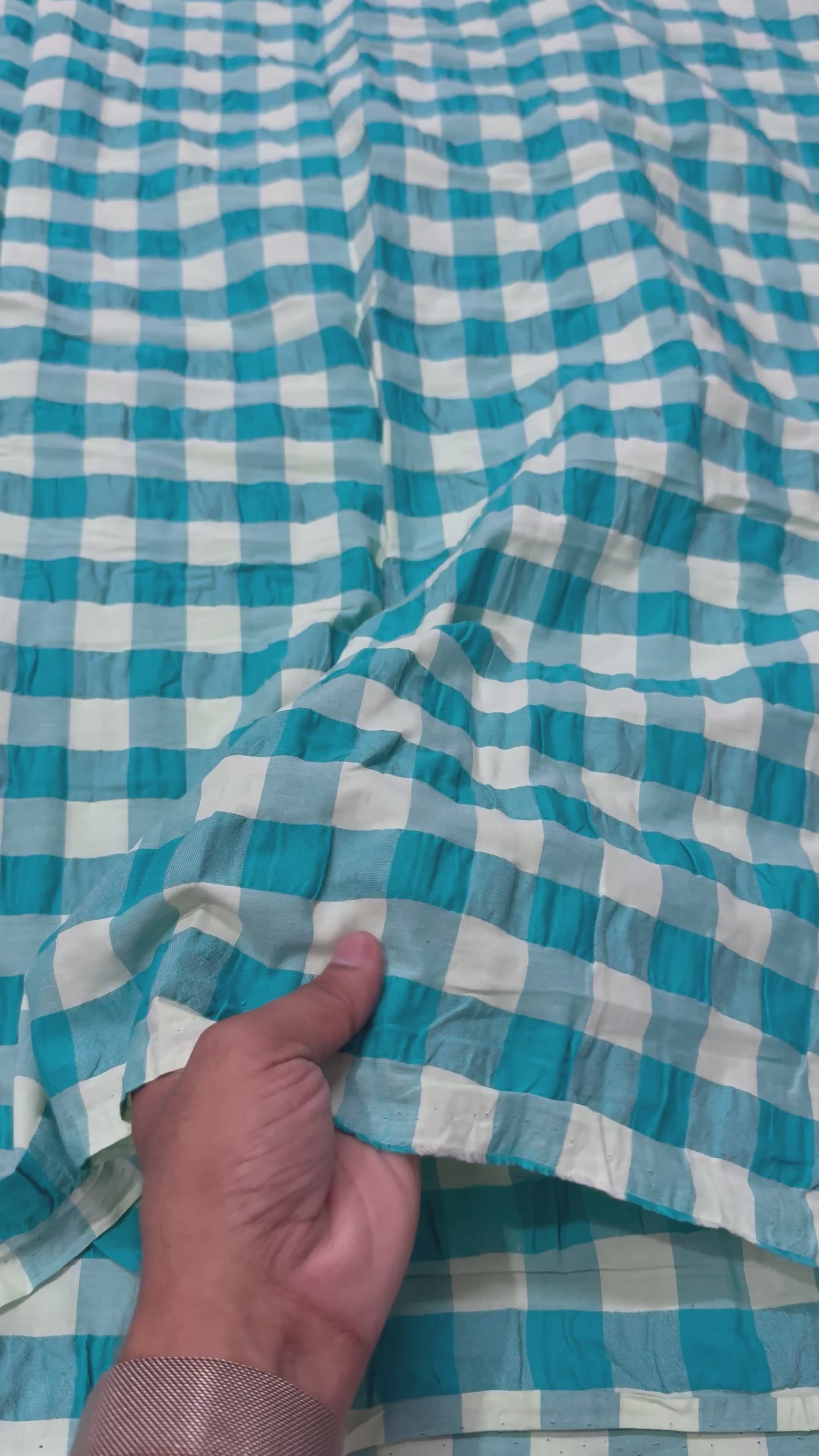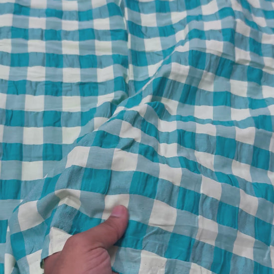 Seersucker is a lightweight cotton fabric with alternating crinkled and smooth vertical stripes that never needs ironing. The construction of the fabric is what makes this fabric perfect for warmer temperatures by having less touch points against the skin.