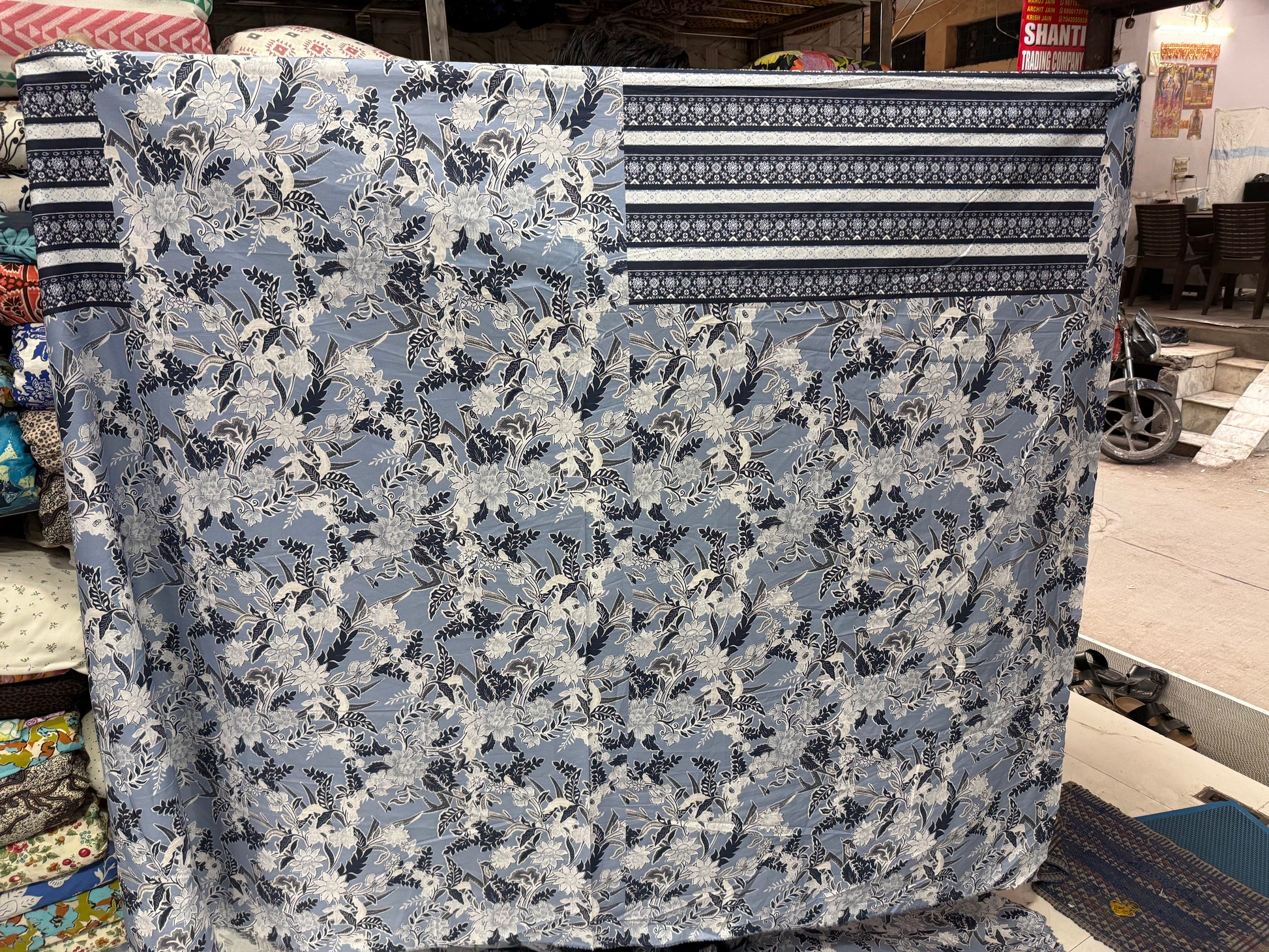 Buy 50s Poplin Suit Pattern Floral Powder Blue Printed Fabric