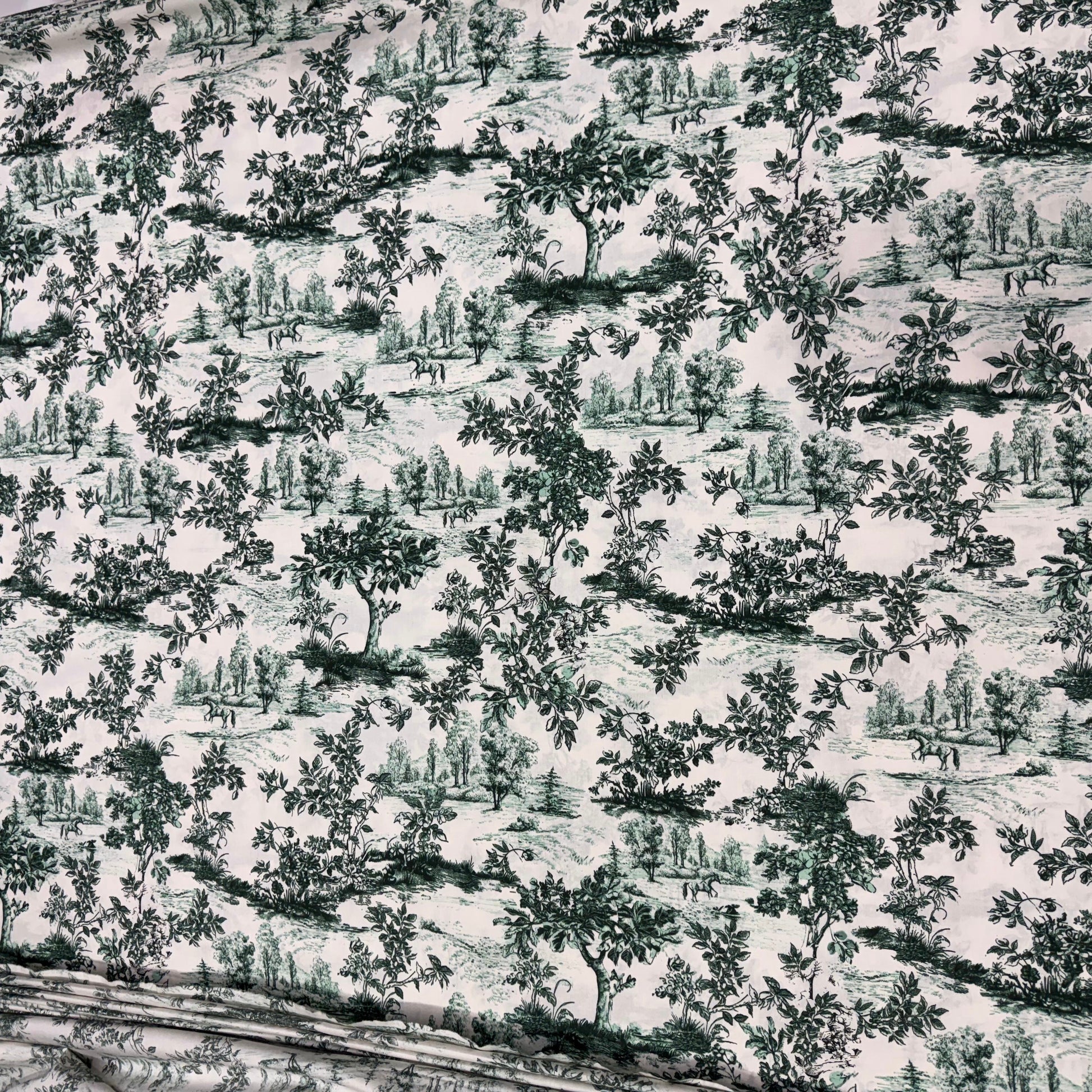 Buy 50s Poplin Toile Green Black Printed Fabric