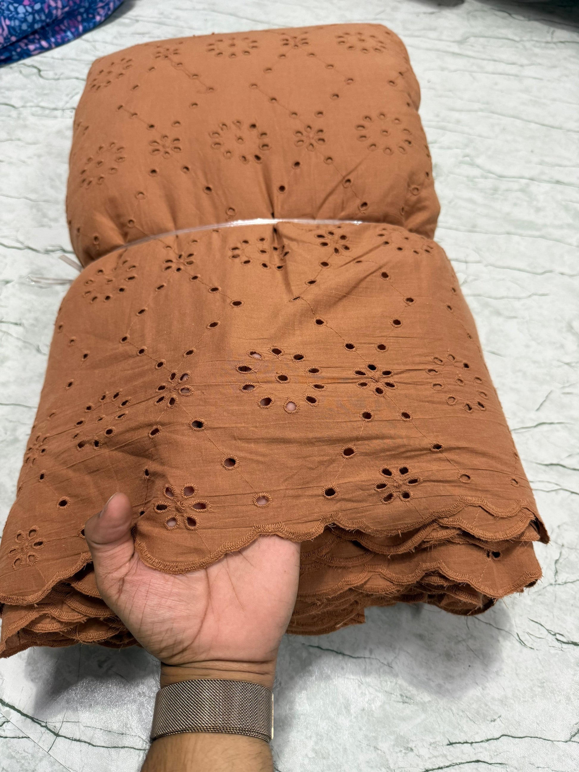 Cotton chikan embroidered fabric exudes elegance and tradition. Made from breathable cotton, it showcases intricate chikan embroidery, celebrated for its delicate patterns and exquisite craftsmanship. Perfect for a variety of apparel, from casual to formal wear, this fabric brings a touch of sophistication and cultural charm to any garment or project.