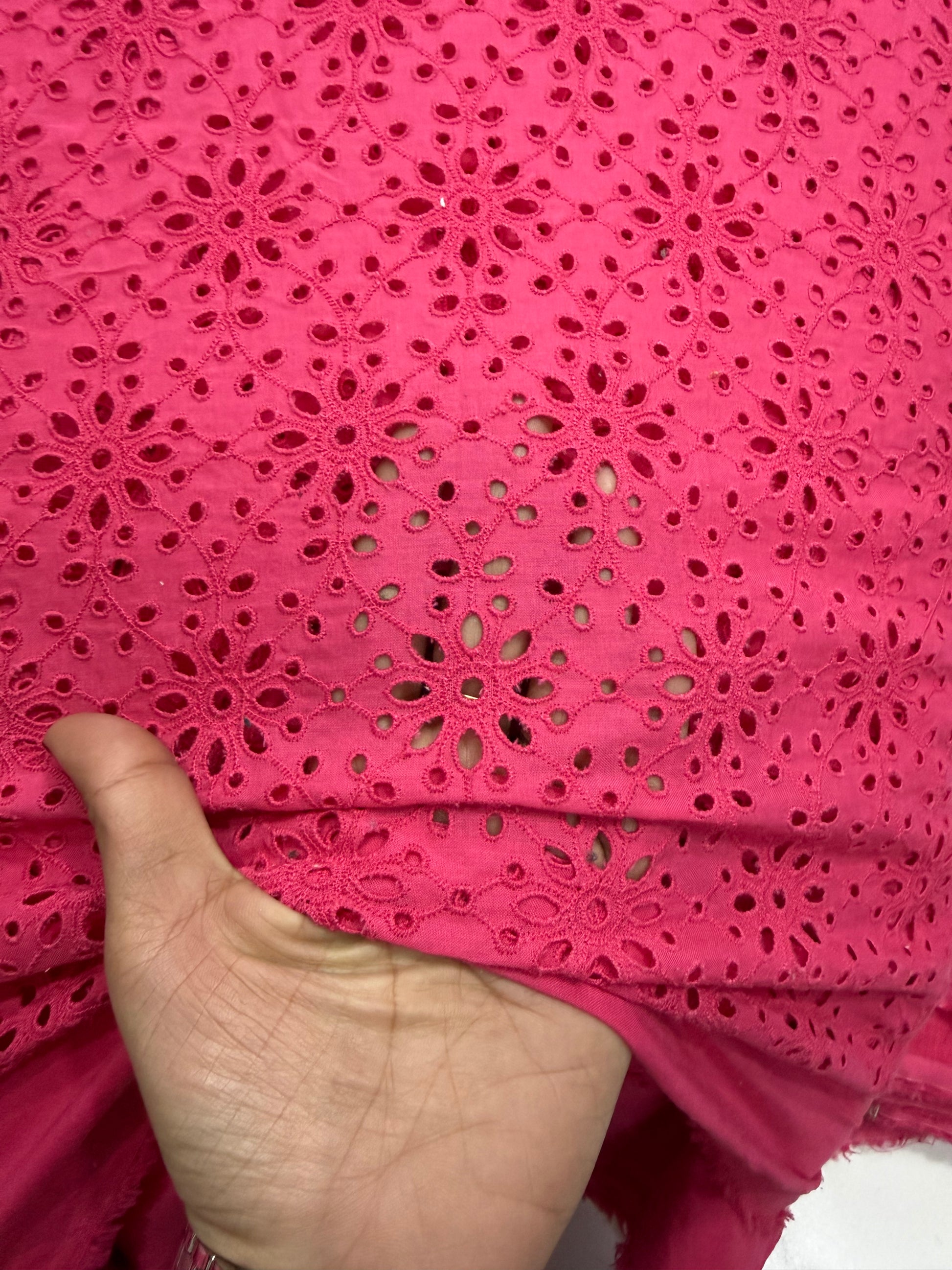 Buy Cotton Hakoba Hot Pink Flower 3 Leaf Pair Embroidery Fabric