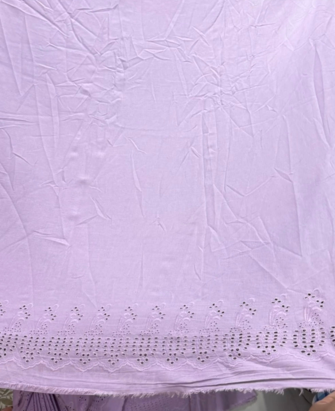 Cotton chikan embroidered fabric exudes elegance and tradition. Made from breathable cotton, it showcases intricate chikan embroidery, celebrated for its delicate patterns and exquisite craftsmanship. Perfect for a variety of apparel, from casual to formal wear, this fabric brings a touch of sophistication and cultural charm to any garment or project.