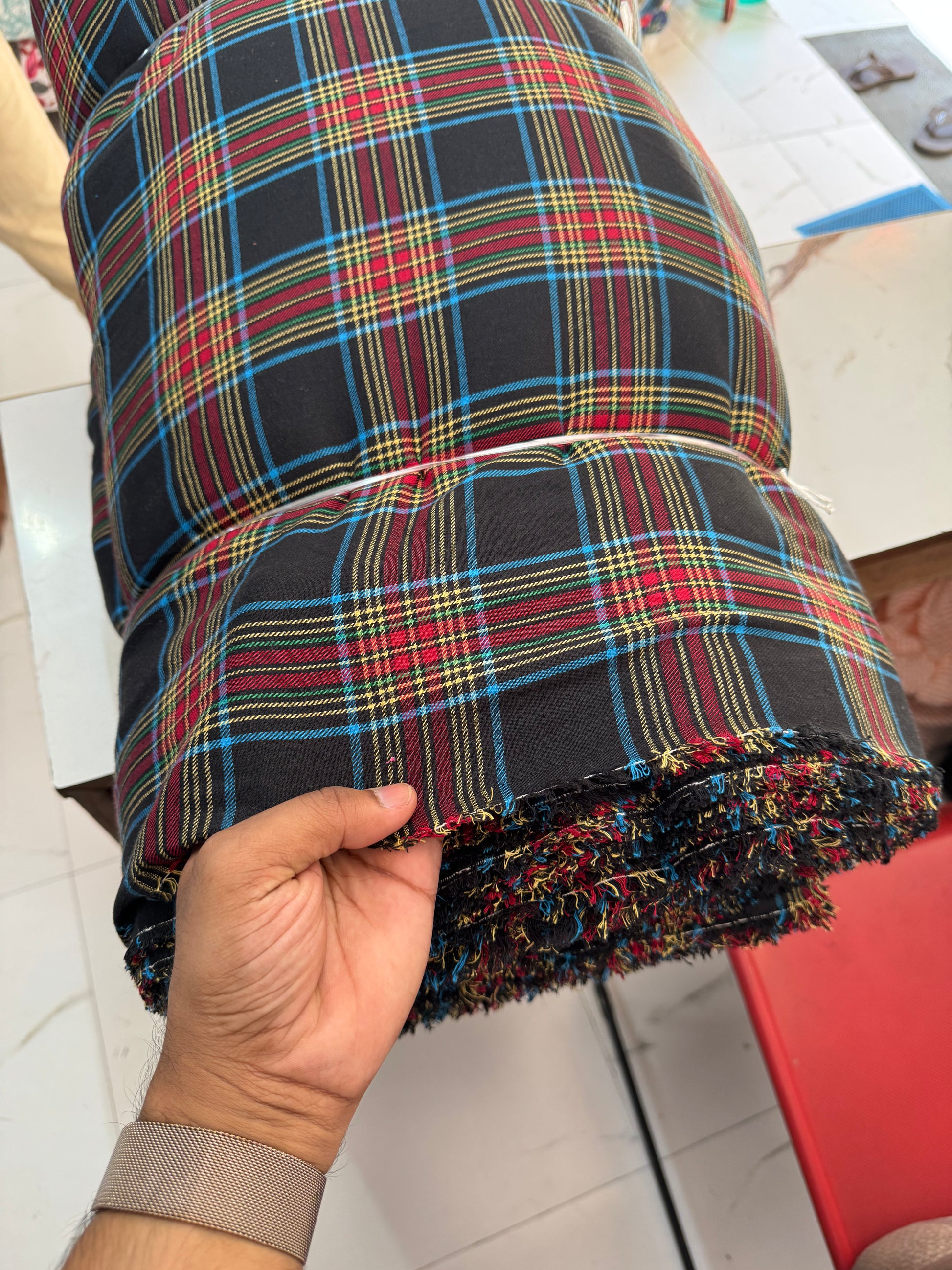 Buy Cotton Twill Black Yellow Red Check Fabric