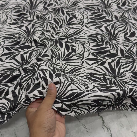 Buy Crimp Cotton Black Leaf Printed Fabric