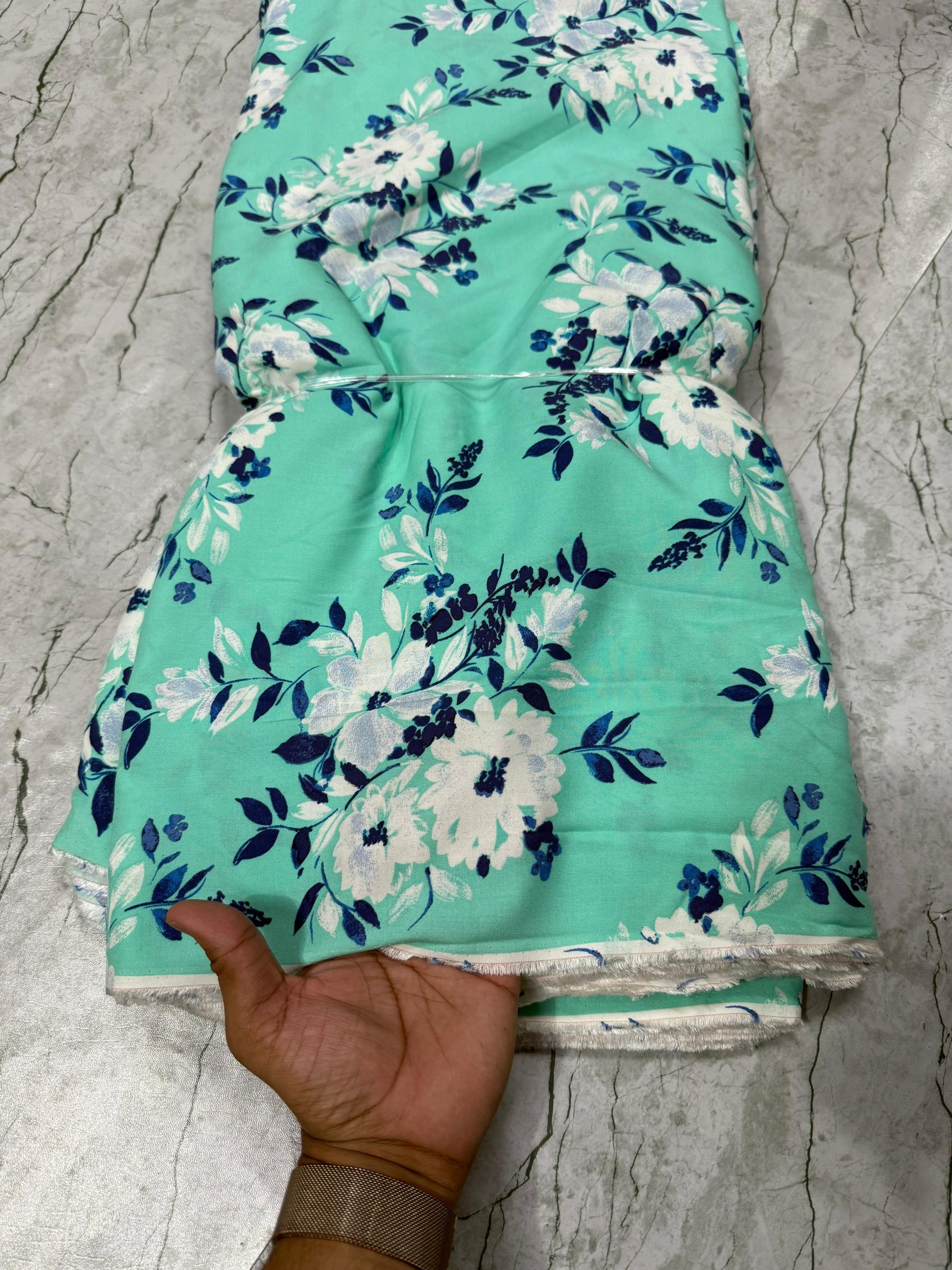 Buy Cotton Viscose Mint Flower Printed Fabric