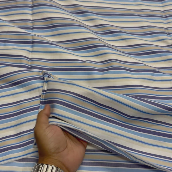 Buy Cotton Viscose Nude Blue Stripe Fabric