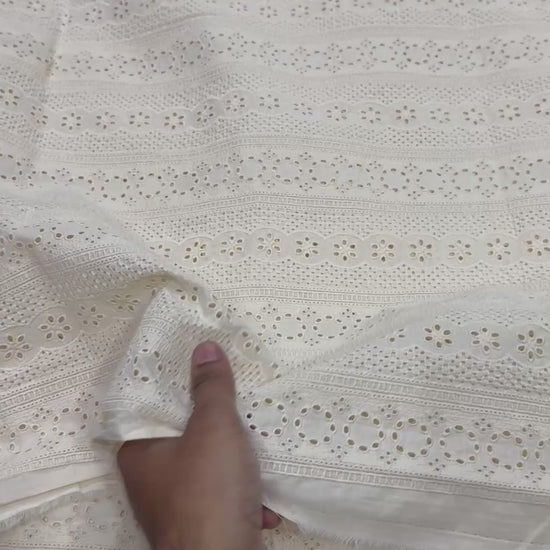 Cotton chikan embroidered fabric exudes elegance and tradition. Made from breathable cotton, it showcases intricate chikan embroidery, celebrated for its delicate patterns and exquisite craftsmanship. Perfect for a variety of apparel, from casual to formal wear, this fabric brings a touch of sophistication and cultural charm to any garment or project.