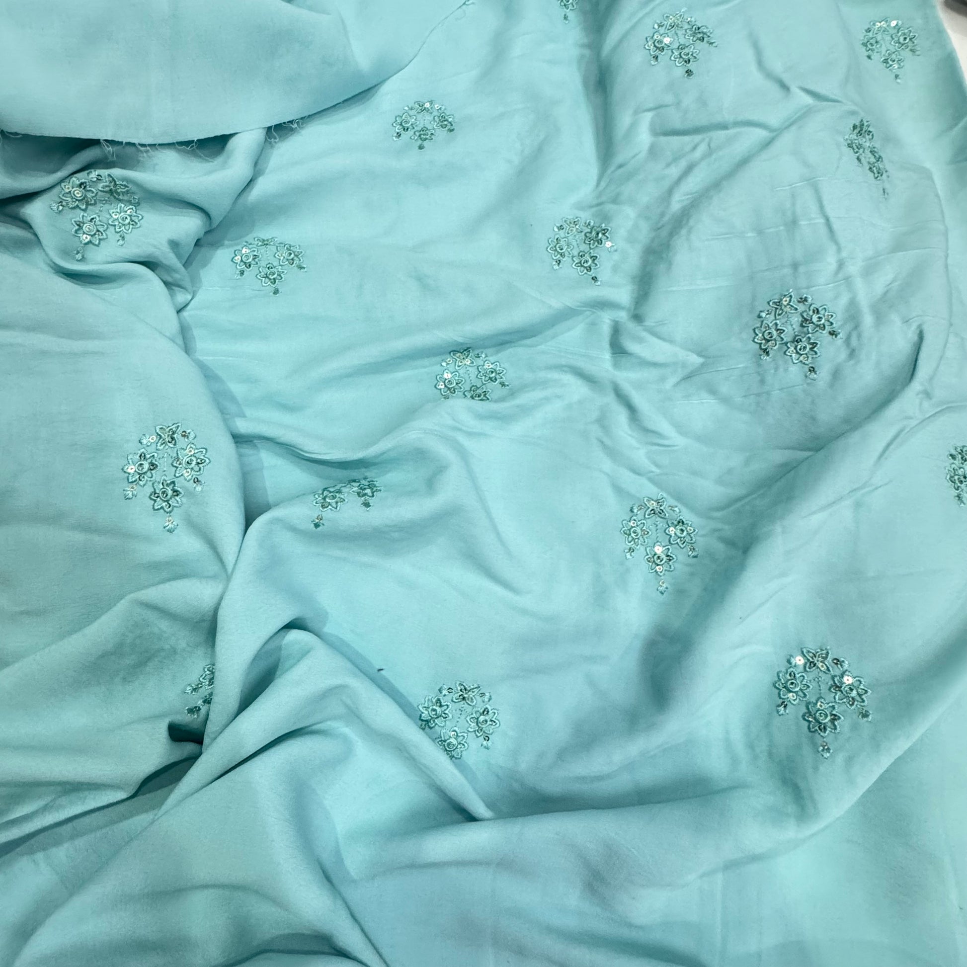 Buy Crepe Silk Powder Blue Hand Work Fabric