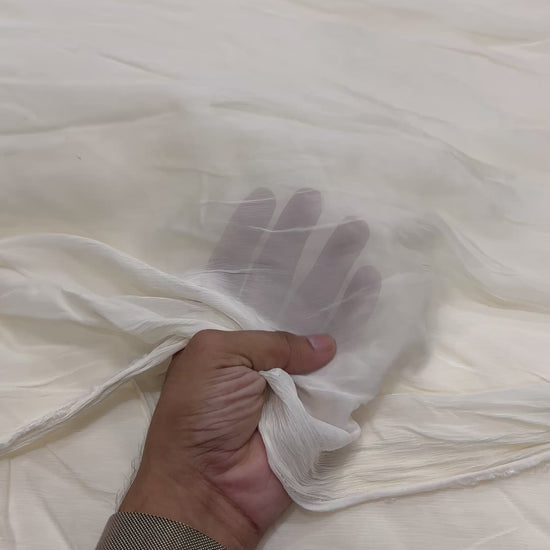 Chiffon fabric is a lightweight, sheer, and delicate material known for its graceful drape and ethereal appearance. It is made from tightly twisted yarns of silk, polyester, or nylon, resulting in a soft, airy texture that feels luxurious against the skin.