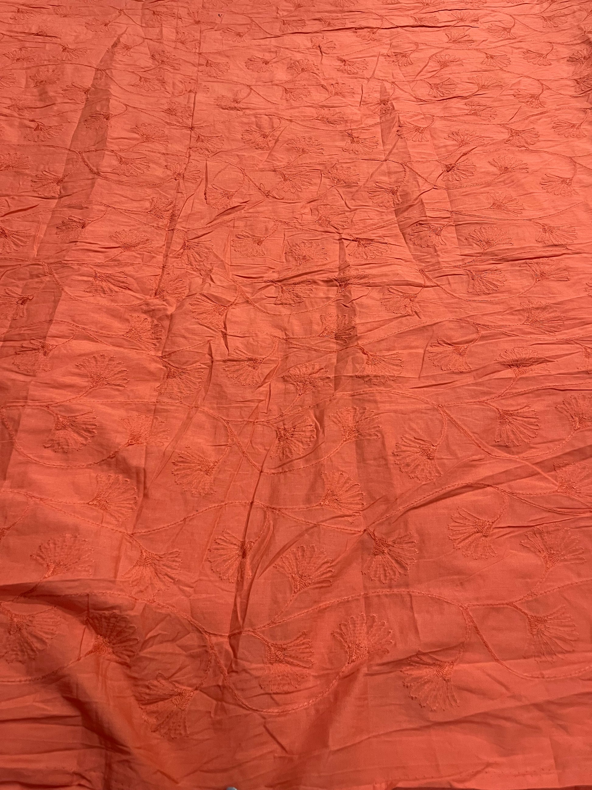 Cotton chikan embroidered fabric exudes elegance and tradition. Made from breathable cotton, it showcases intricate chikan embroidery, celebrated for its delicate patterns and exquisite craftsmanship. Perfect for a variety of apparel, from casual to formal wear, this fabric brings a touch of sophistication and cultural charm to any garment or project.