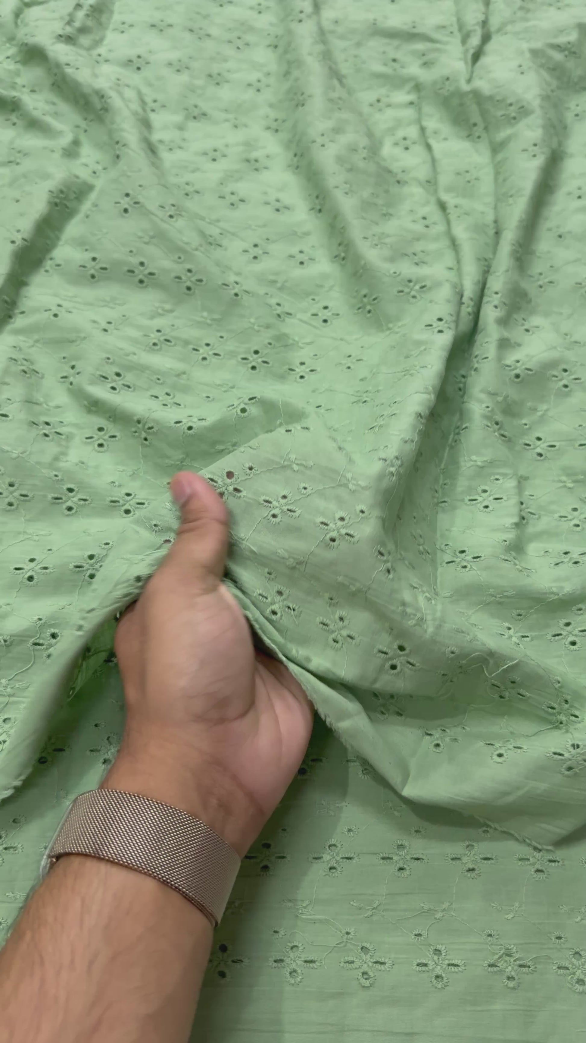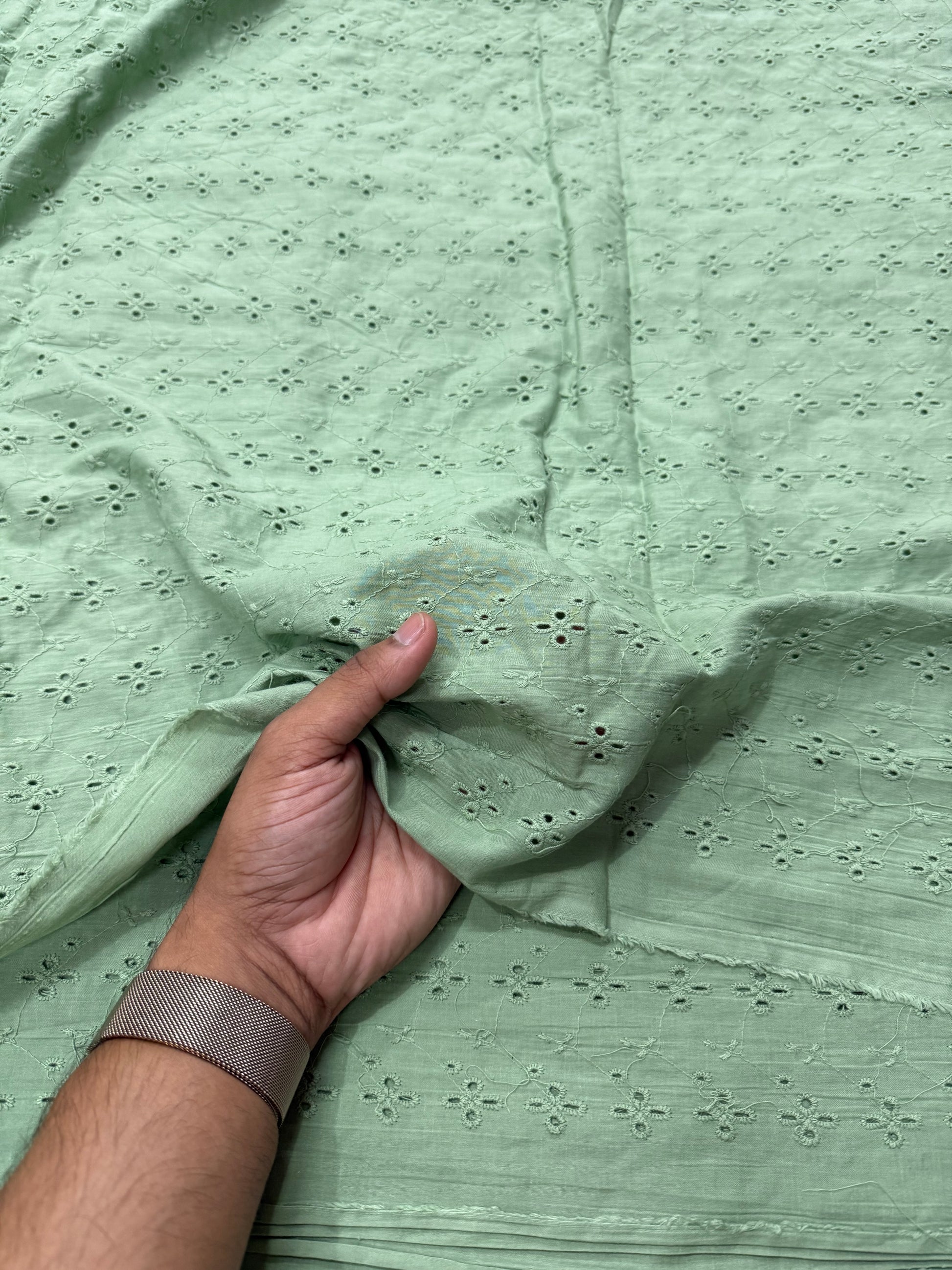 Cotton chikan embroidered fabric exudes elegance and tradition. Made from breathable cotton, it showcases intricate chikan embroidery, celebrated for its delicate patterns and exquisite craftsmanship. Perfect for a variety of apparel, from casual to formal wear, this fabric brings a touch of sophistication and cultural charm to any garment or project.